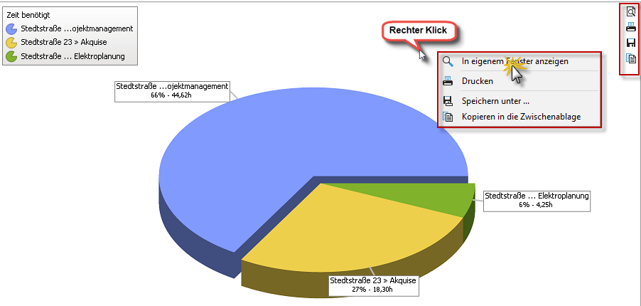 Per Rechtsklick auf die Grafik können Sie die Ansicht vergrößern, drucken, speichern oder auch in die Zwischenablage kopieren, um sie in einem anderen Programm zu verwenden. Diese Optionen stehen Ihnen auch als Knöpfe auf der rechten Seite der Grafik zur Verfügung, sollten Sie nicht mit dem Kontextmenü arbeiten.